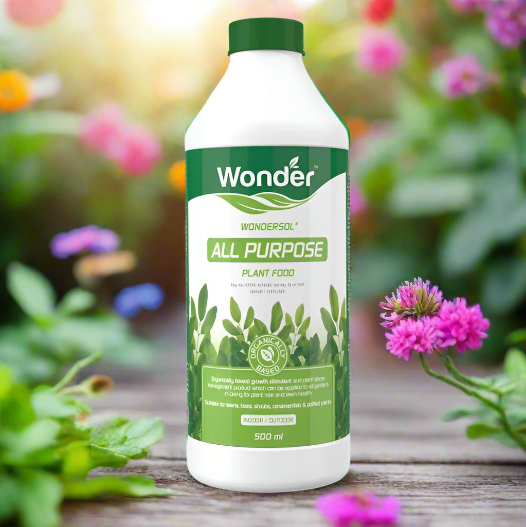 Elevate your gardening experience with Wonder All Purpose liquid plant food. This organic formula serves as a catalyst for accelerated plant development, promoting robust growth and outstanding health. It also offers protection against external stressors for strong and thriving greenery. Cultivate a thriving garden with this indispensable tool for plant vitality.